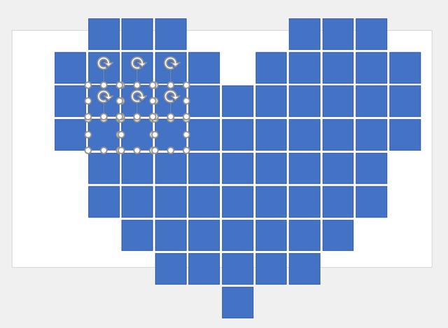 删除心形后,就得到了正方形阵列组成的心形: