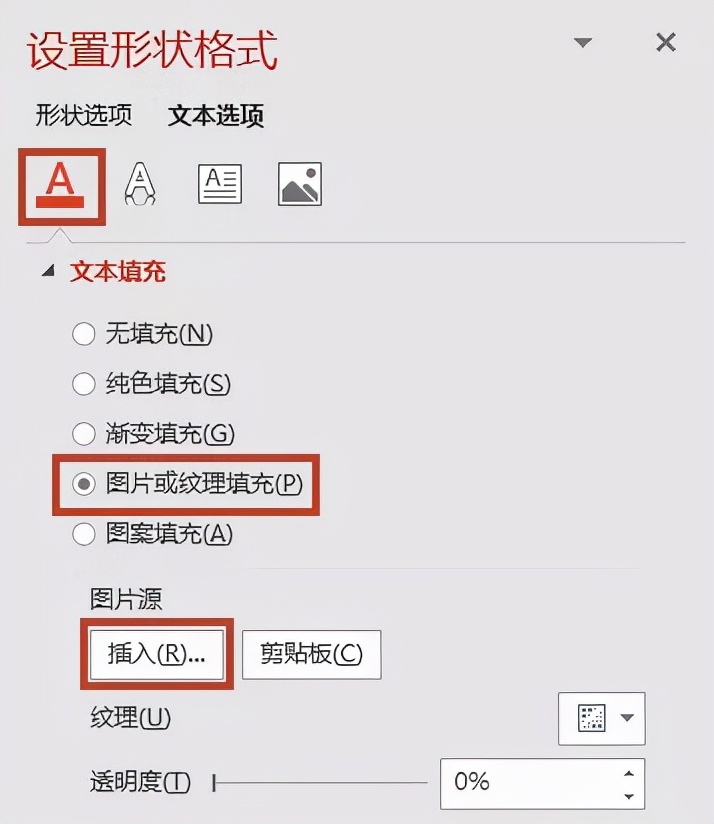 点击“文本填充”,选择“图片或纹理填充”>>“插入图片,来自文件”>>选择之前存放的“金灿灿”图片。