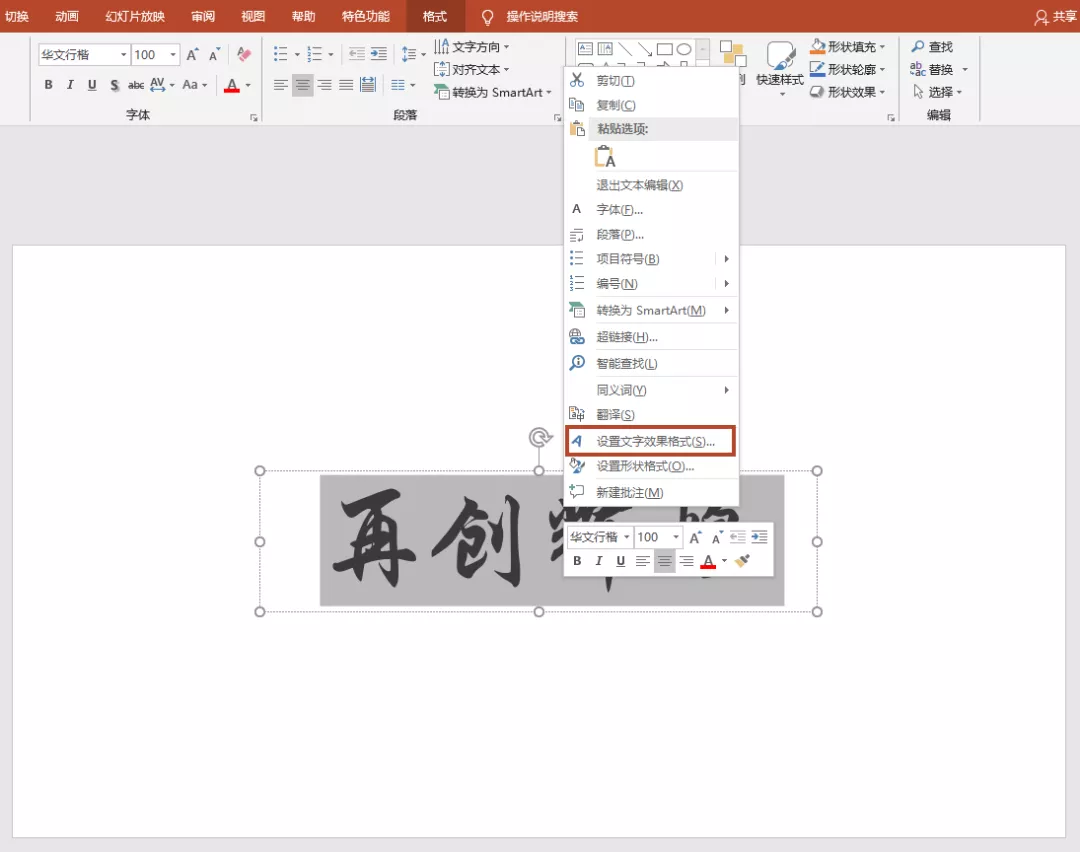 鼠标选择所有文字,然后,右键,选择“设置文字效果格式”: