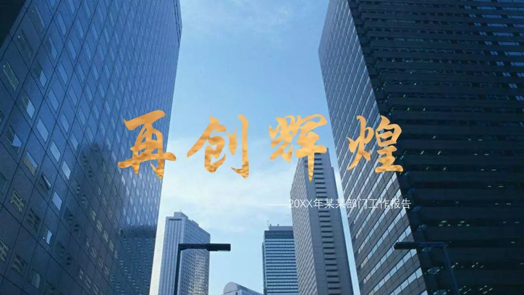 在PPT页面中插入文本,文字大小调整合适,调整文本的位置。菜鸟菌在PPT页面插入了文字“再创辉煌”,作为示例: