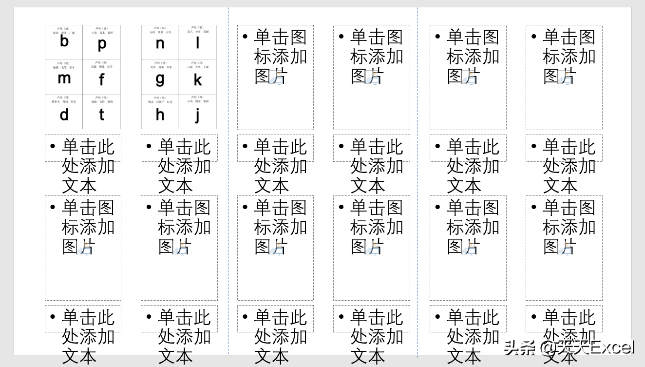 这里我们主要用到图片和文本占位符,因为我设想的动物小册子是一张图片对应一个介绍文字写名字的,比较简单。