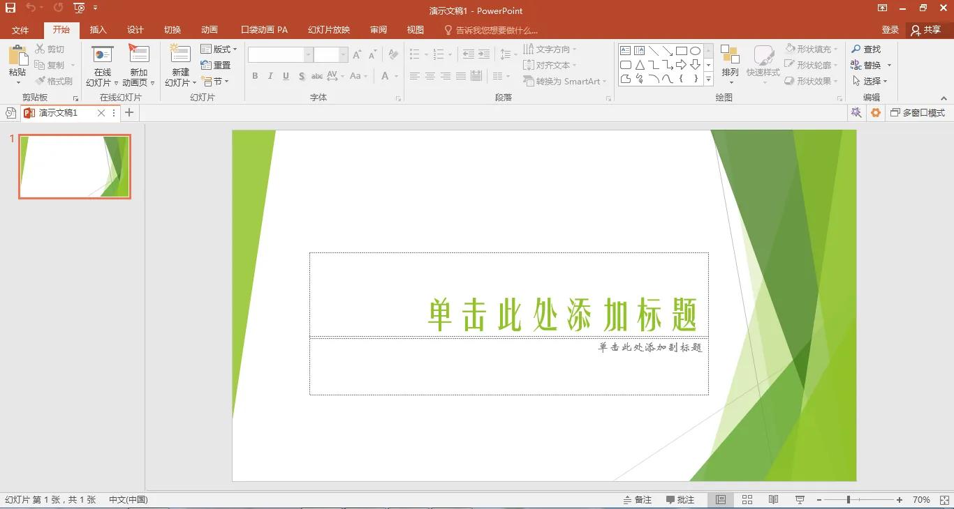 在默认情况下,新创建的演示文稿为空白文档,我们可以为演示文稿设置一个默认的主题样式,就可以避免我们每次打开都要去应用主题。如果系统提供的主题样式不能满足我们的设计需求,还可以根据需要自定义主题颜色和字体,并保存当前主题。