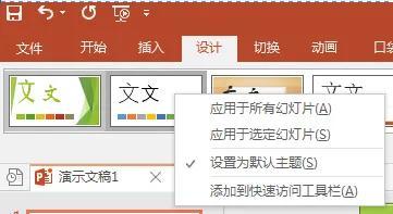 当某一页幻灯片需要修改主题的风格时,右键单击选定的主题选择“应用于选定幻灯片”选项,就可修改当前页的主题样式。