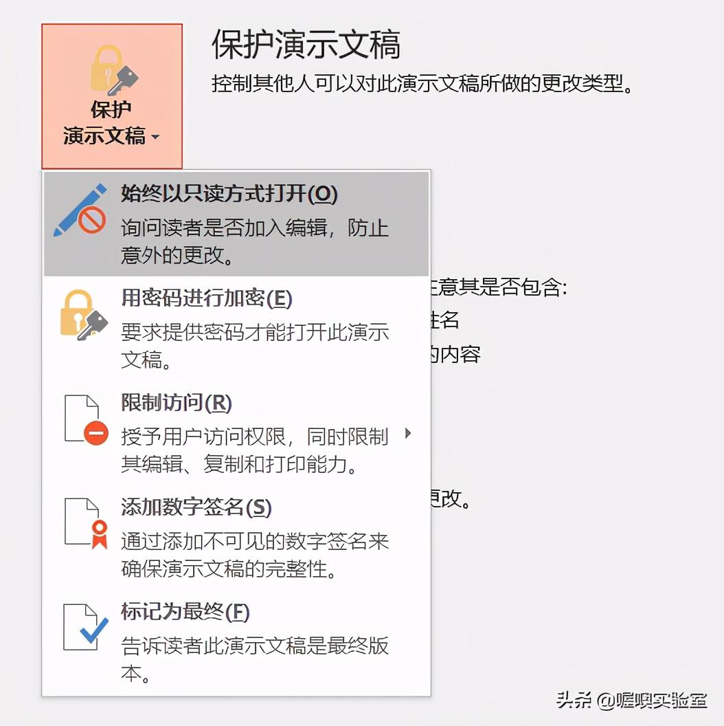 如果要阻止其他人对Microsoft PowerPoint演示文稿进行编辑,或者让其他人知道您发送的文件是最终版本,则可以将其设为只读。只需要几步点击。
