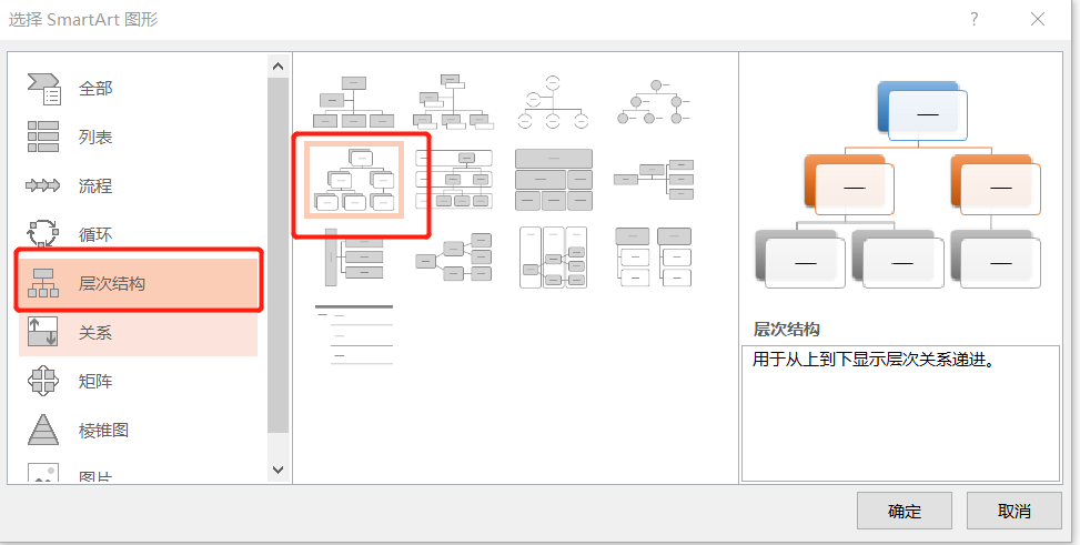 2)选择“层次结构”,从中选择一个自己喜欢的呈现方式,就可以了。