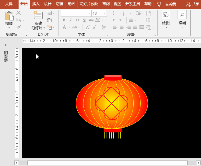 选择圆角矩形,按住Ctrl+Shift键拖动,复制1份,使其紧贴在一起,右键“组合”之;同样按住Ctrl+Shift键拖动,复制1份,并按住Shift键旋转90度,与前一组合对齐;右键“组合”将两组合组合之;同样按住Shift键旋转45度,调整其大小,置于灯笼中心;