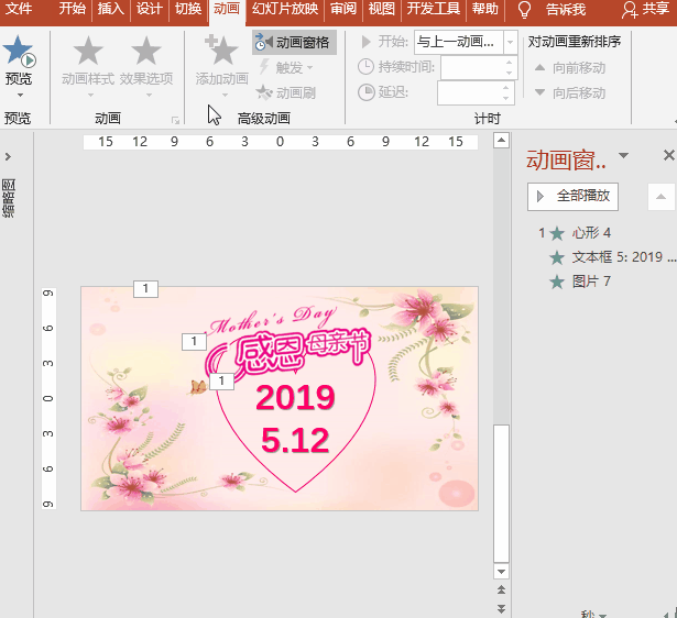 温馨的淡粉色背景下——我们游子之心由底向上逐渐呈现——2019年5月12日,美好的节日数字由天而降,重磅敲打着我们的心——由衷的欢呼“Mather’s Day感恩母亲节”——献上一束康乃馨,摇曳呀摇曳。