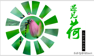 四周百叶窗图片——中心圆圆形图片——文字或图文点缀美化。