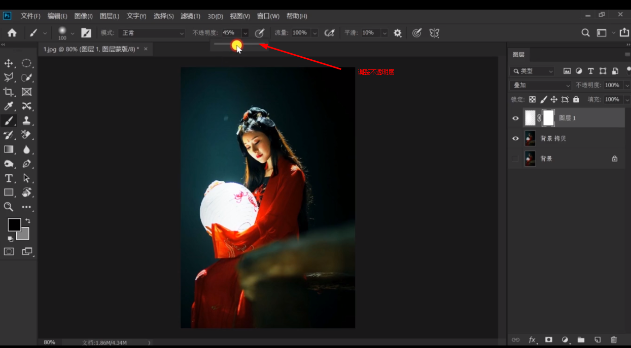 调整画笔不透明度
