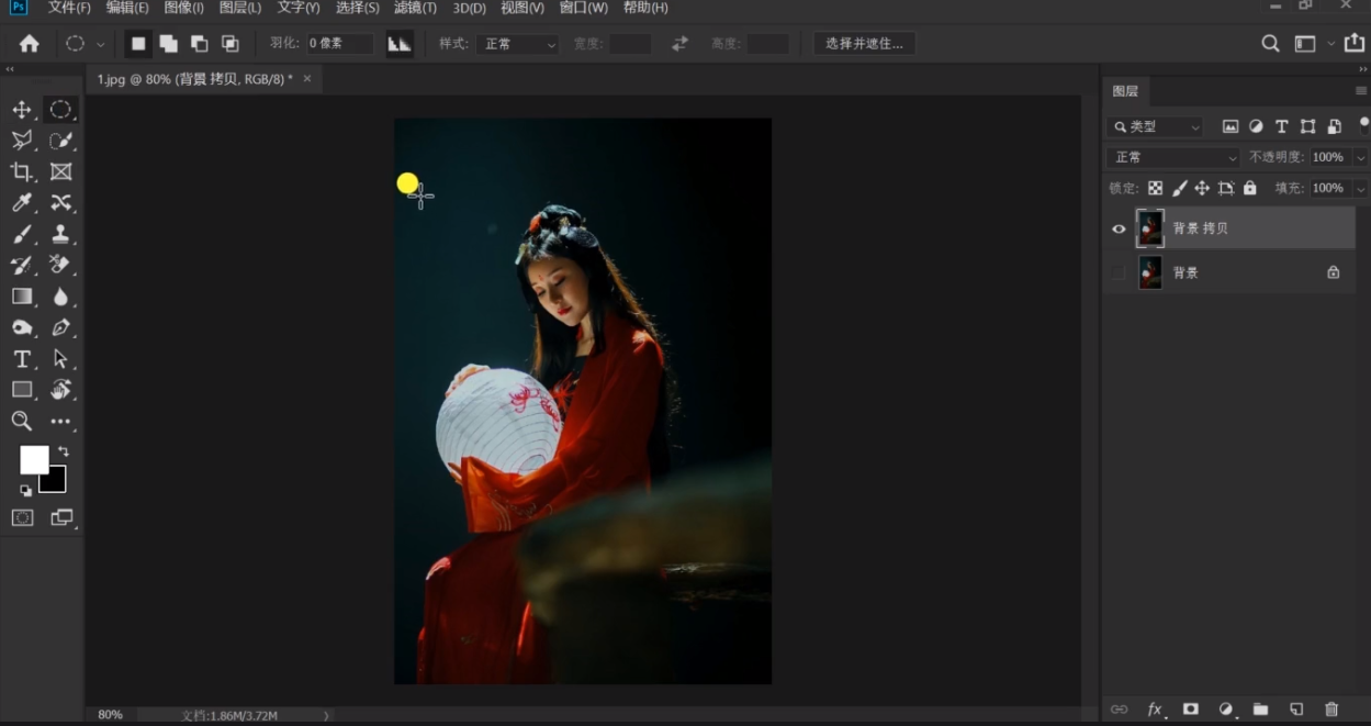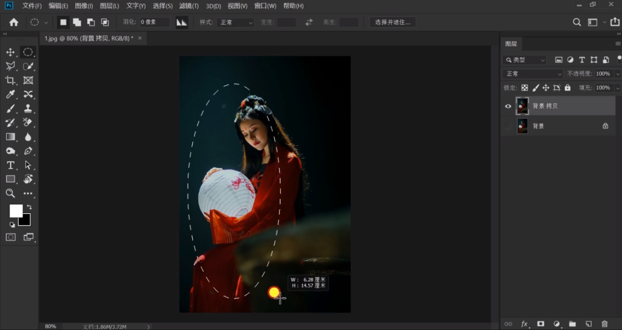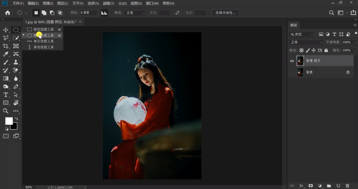用椭圆框选工具框住局部
