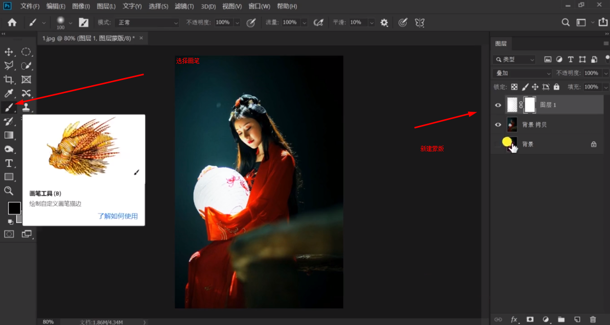 添加蒙版,选择画笔