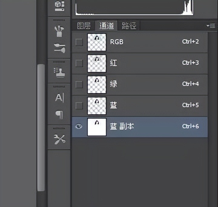 2.将隐藏,切换到通道面板,找出背景与头发反差最大的一个通道,拷贝一个新的通道