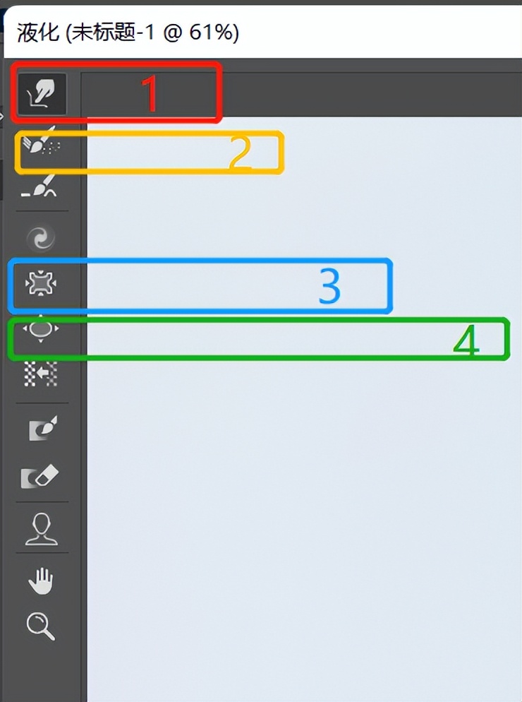 3、常用工具使用和介绍、1代表向前推工具,主要是把脸部向内推,从而使脸变小、2代表重建工具,就是把上一步添加的效果撤回。