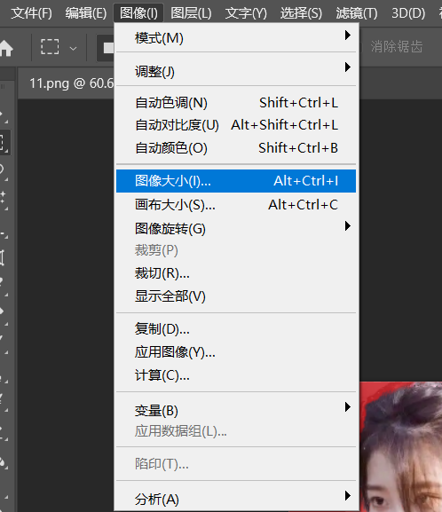第七步:点击图像—图像大小—适当调整宽度和高度,注意分辨率时像素