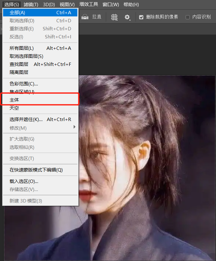 第四步:选择第二个:调整边缘画笔,围绕头发丝边缘画一圈