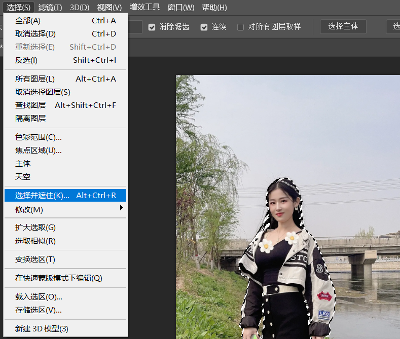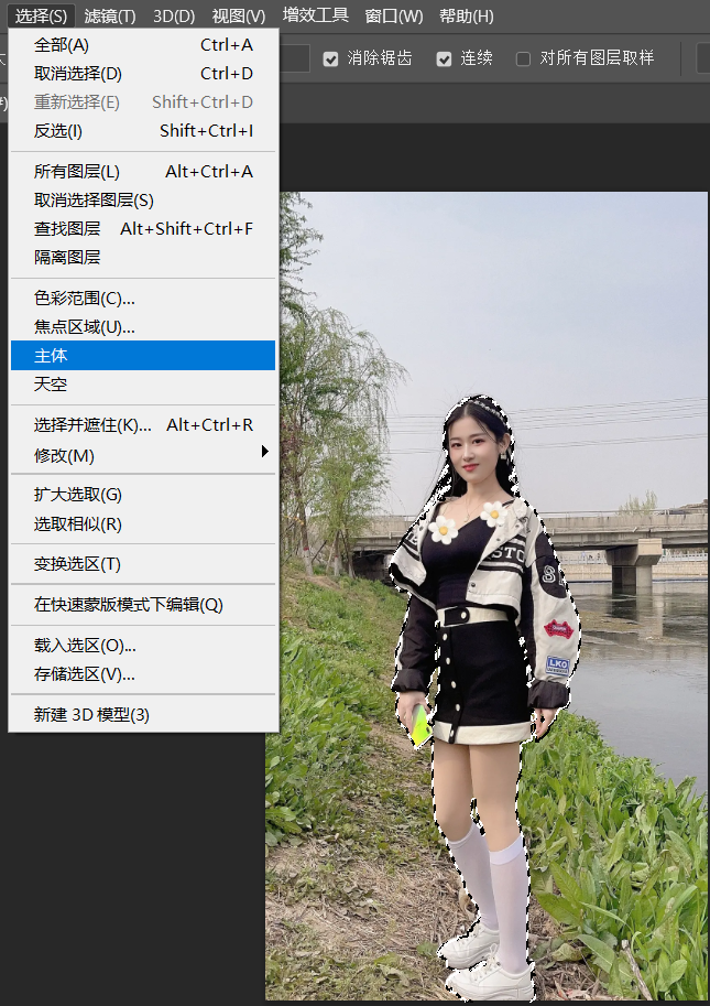第一步:点击:选择—点击 主体,把人物主体抠选出来。