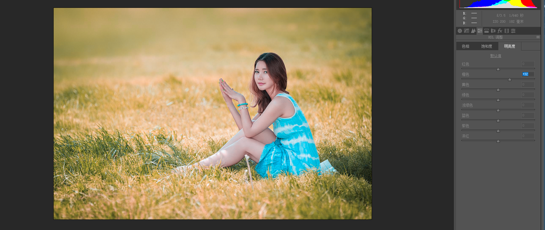只这一步基本上就达到了效果,但是这里的问题是人物脸部的肤色也会跟着偏,必须到HSL中稍作调整。