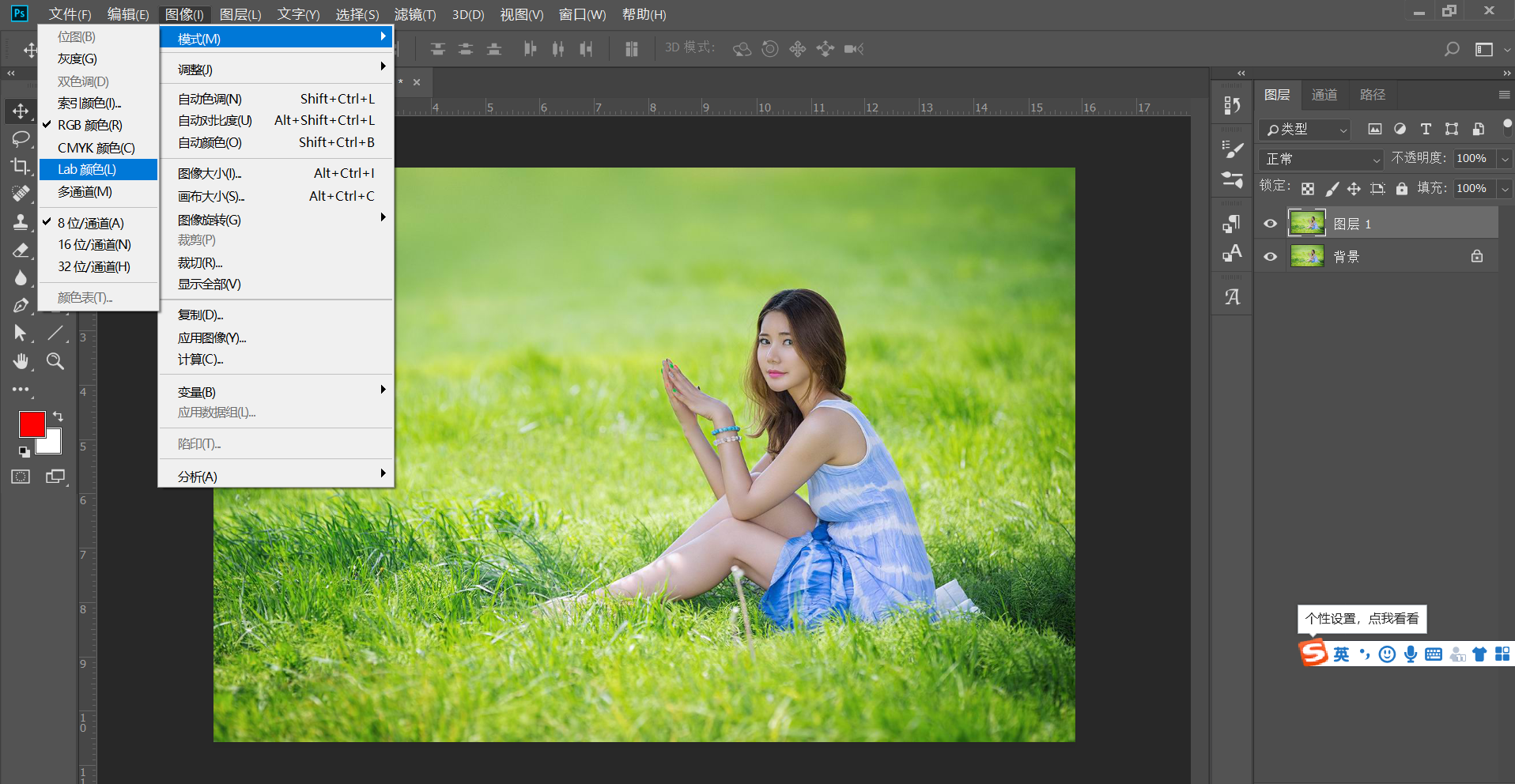 首先第一步调整期色彩模式为Lab。