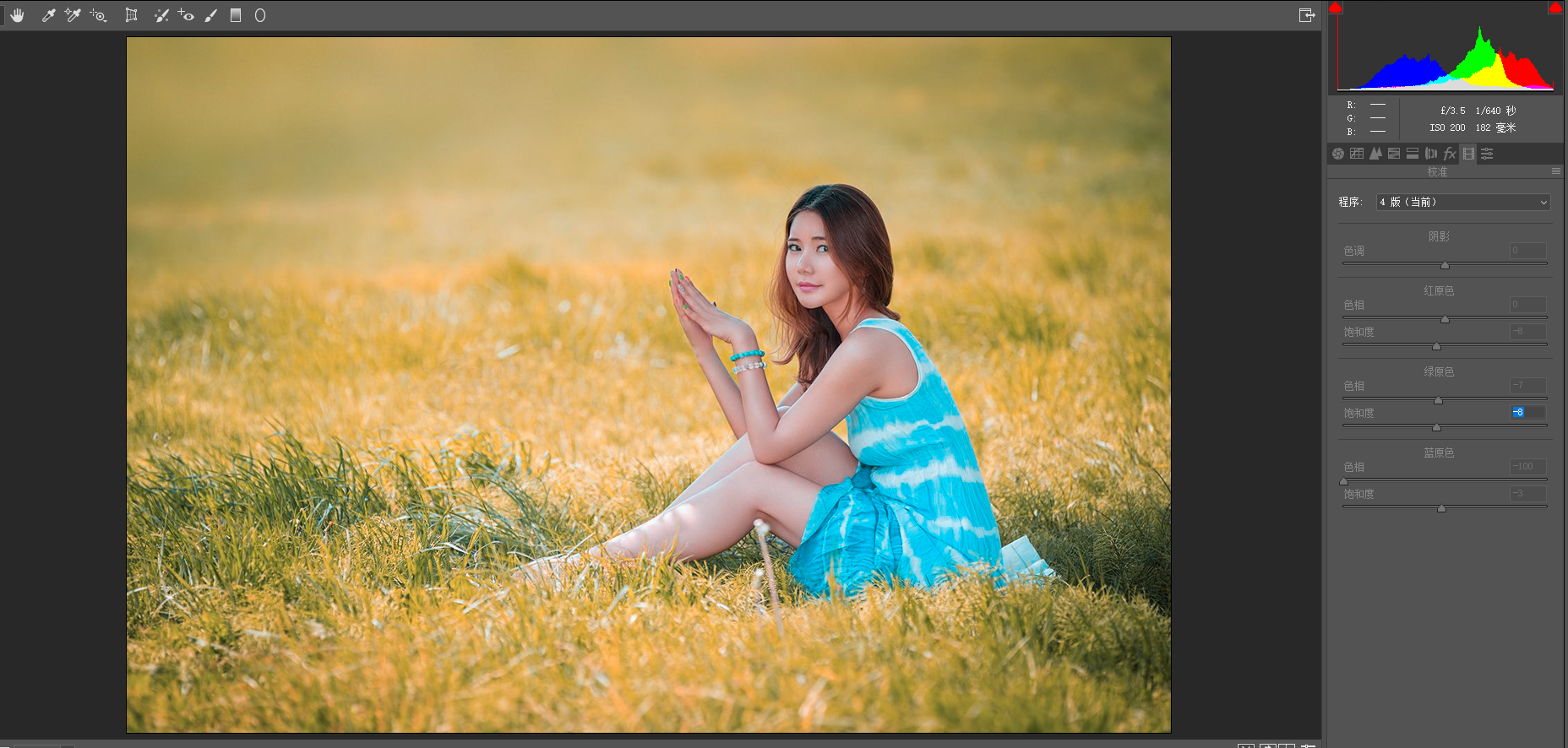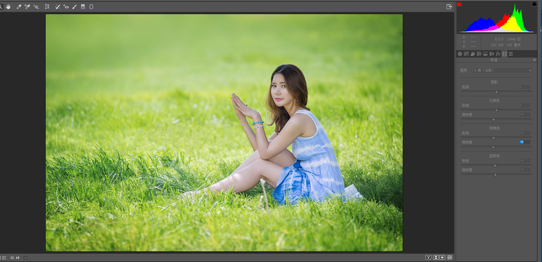 在RGB模式下,打开Camera raw,到校准对话框。