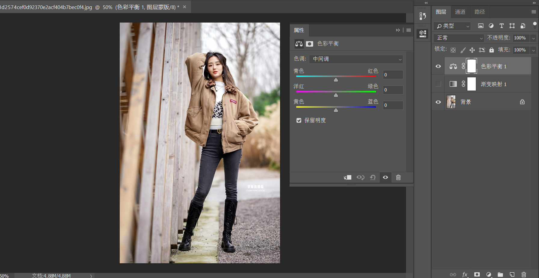 其实渐变映射作为调色的一个工具,有其独到之处,但是和其他的调色工具又有区别,我们来看一下它和色彩平衡的区别。