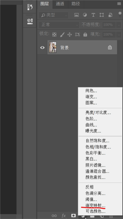 许久不写点文字教程了,今天我们来聊一聊”渐变映射”。这个东西在哪里,一般情况下渐变映射是以调整图层的形式出现的,位置看下图。