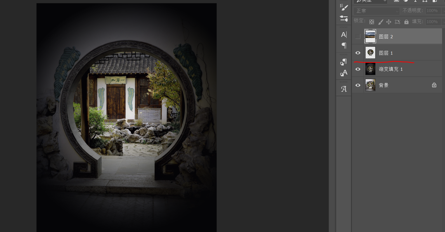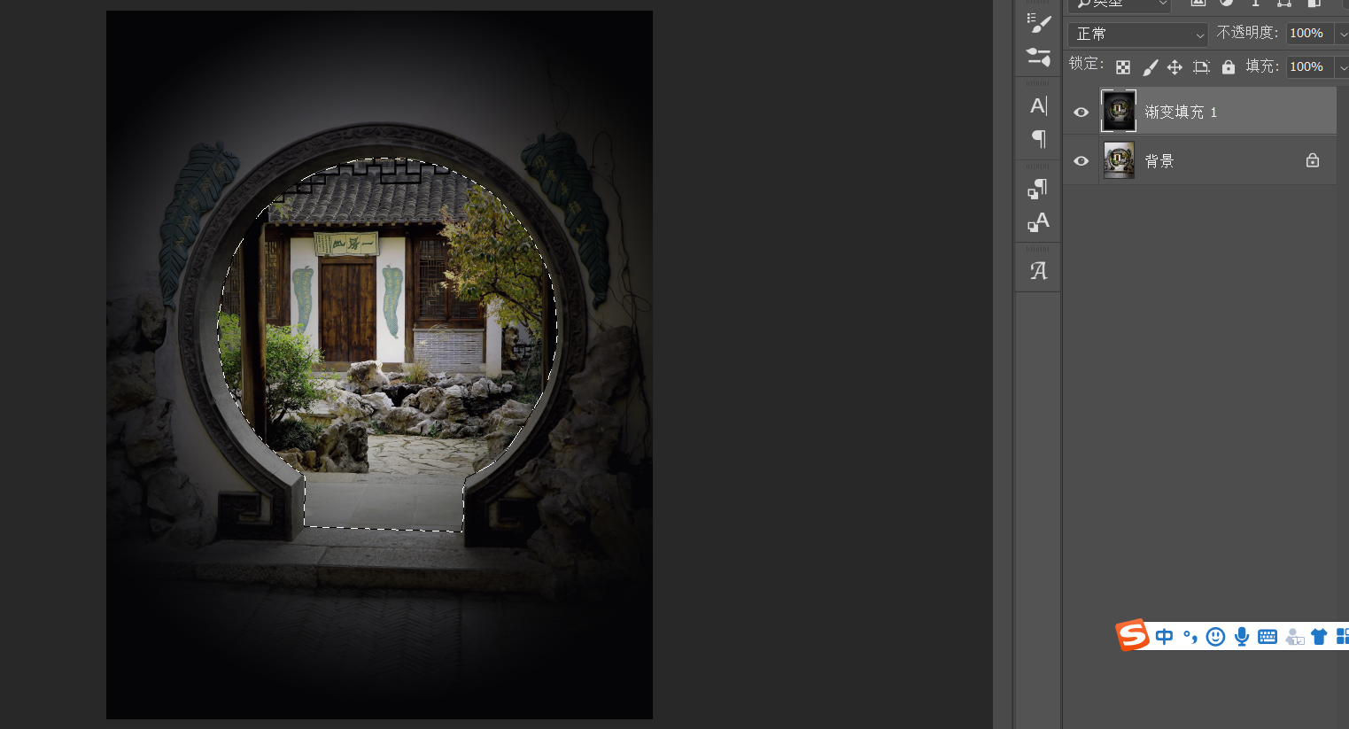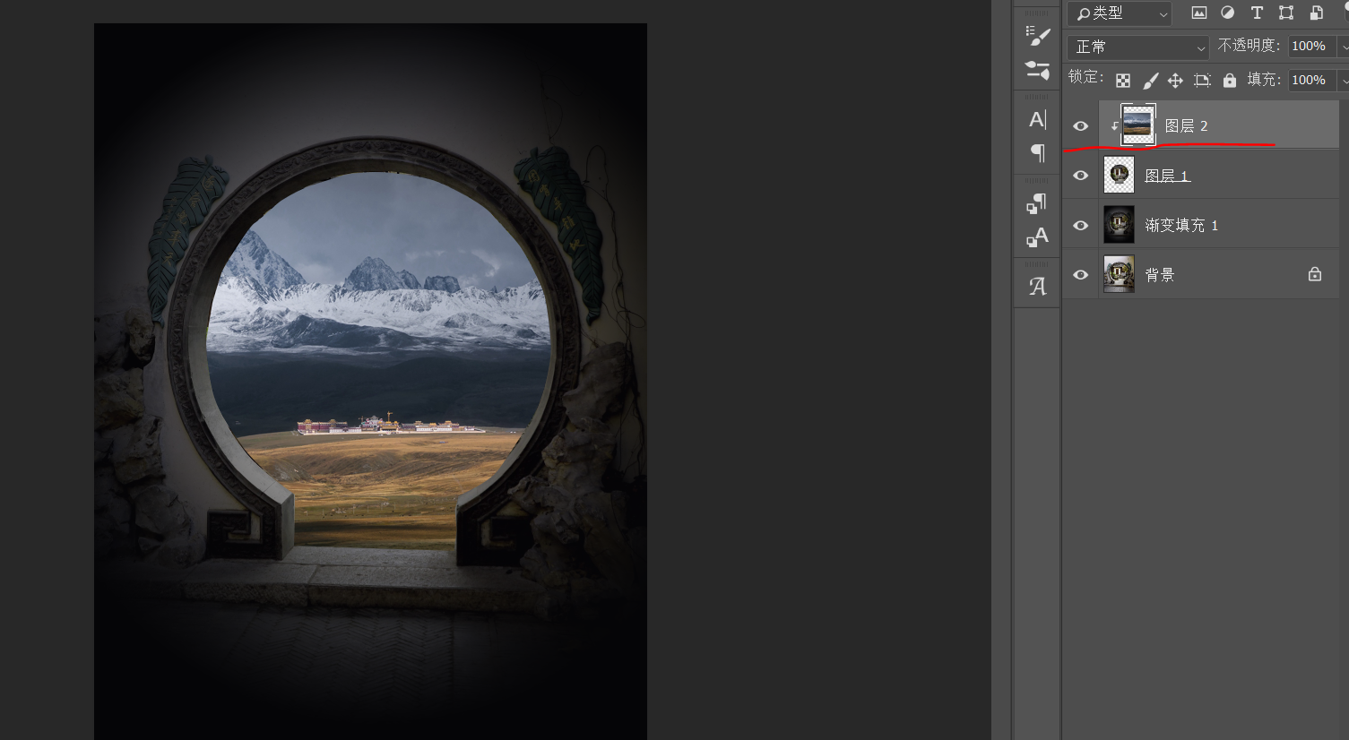 我想把画面中门后边的景物换一换,那么我先搞个选区出来,CTRL+J复制出新的图层出来。