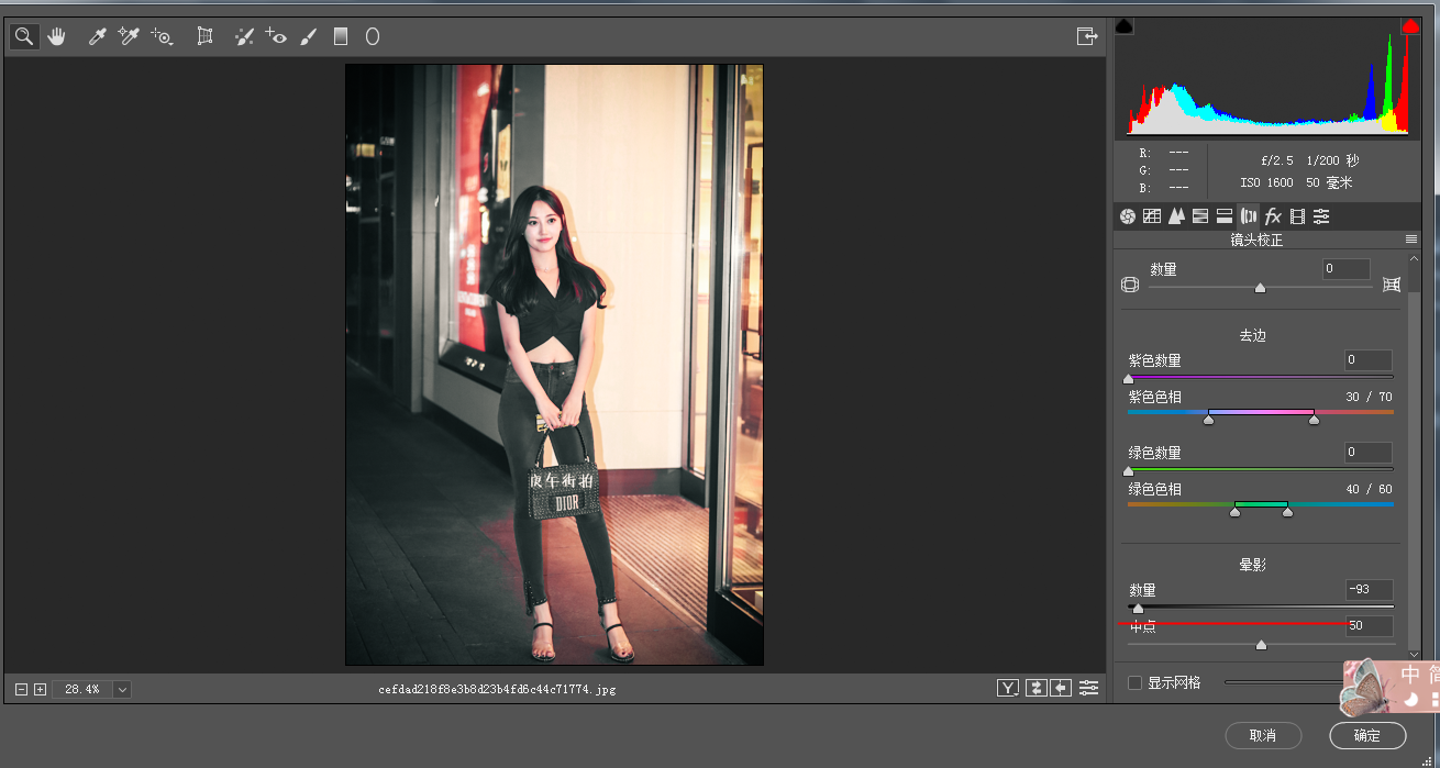 对于夜景人像,我一般喜欢加暗角以此来突出人物的主体。
