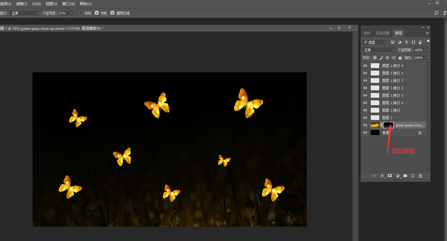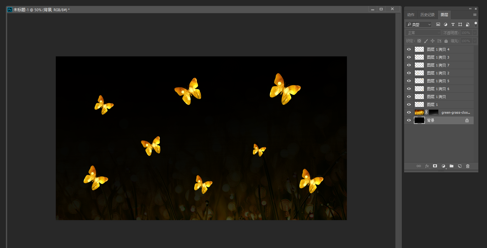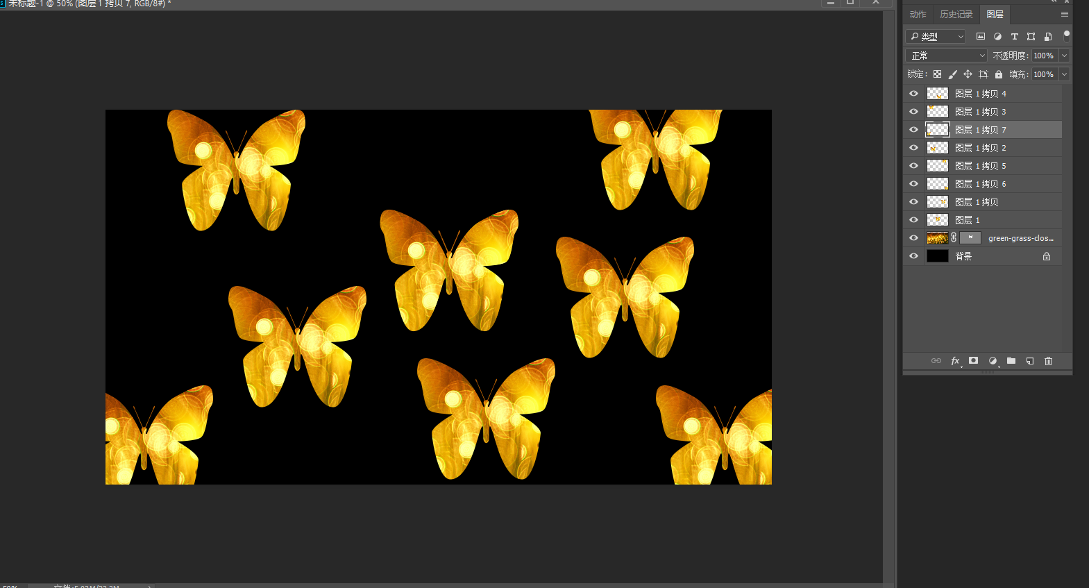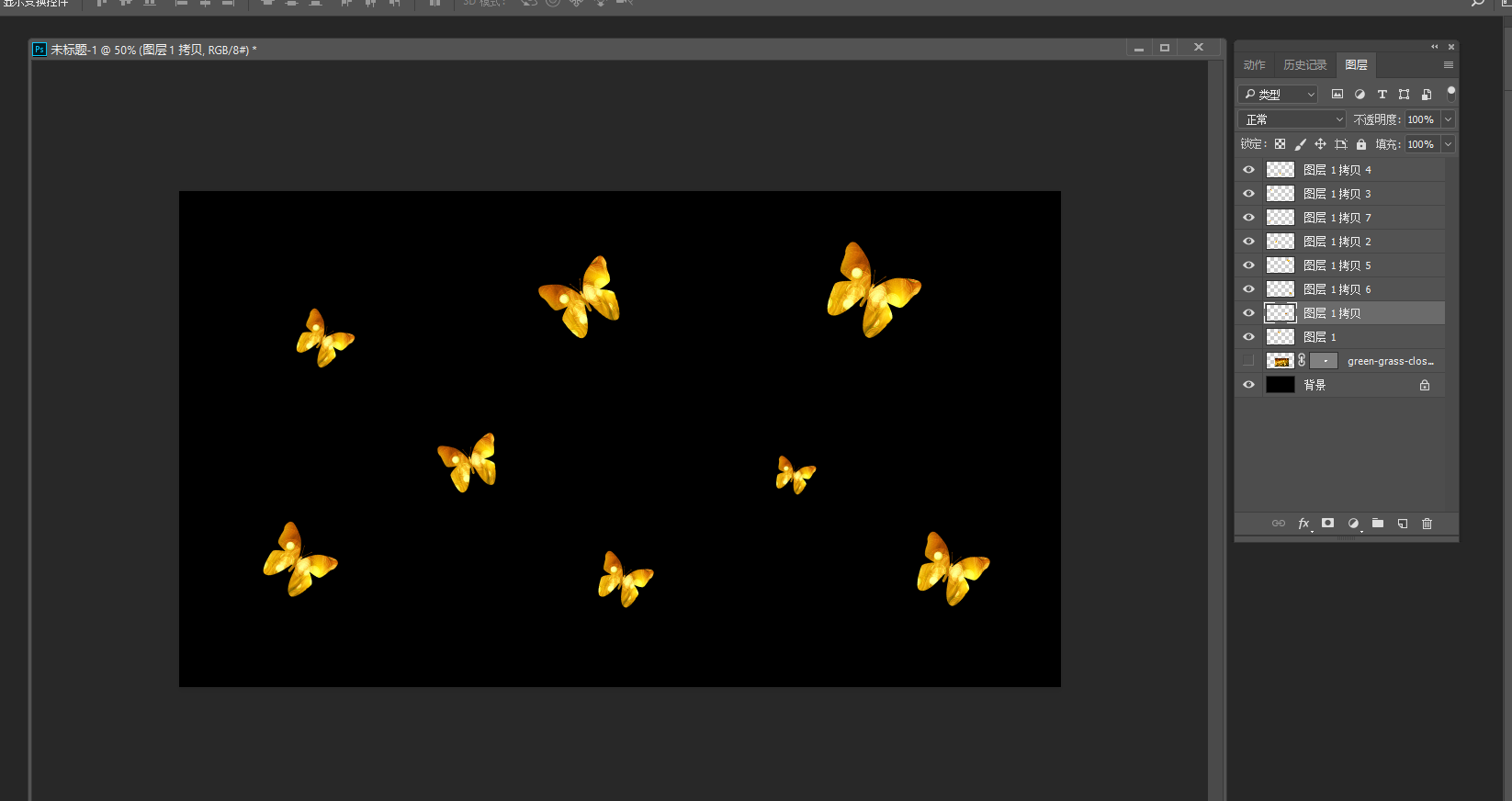 9.分别调整每一只蝴蝶的大小,位置,旋转方向,如图