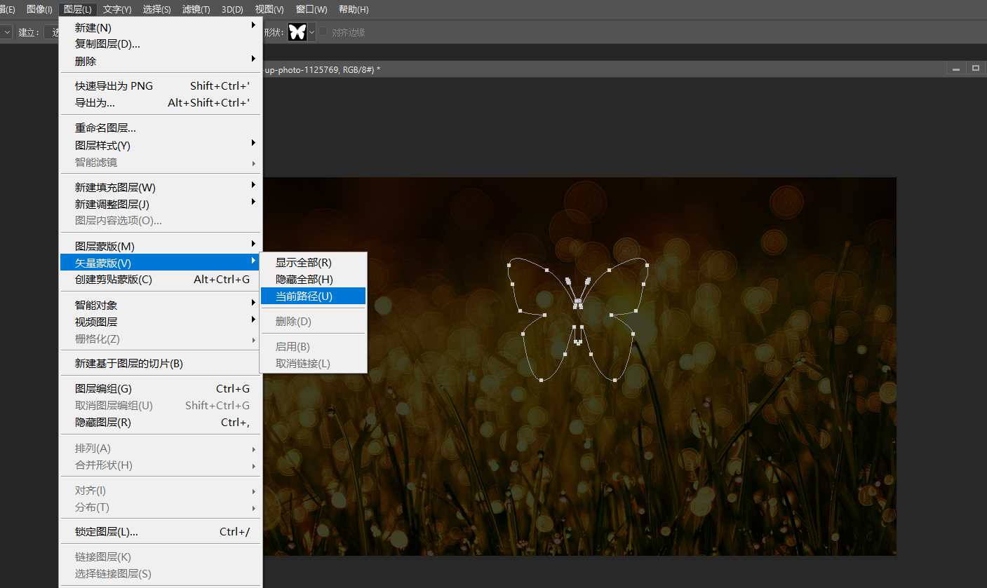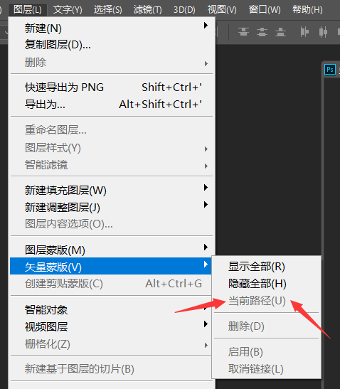 执行步骤:图层(菜单栏)>矢量蒙版>当前路径
