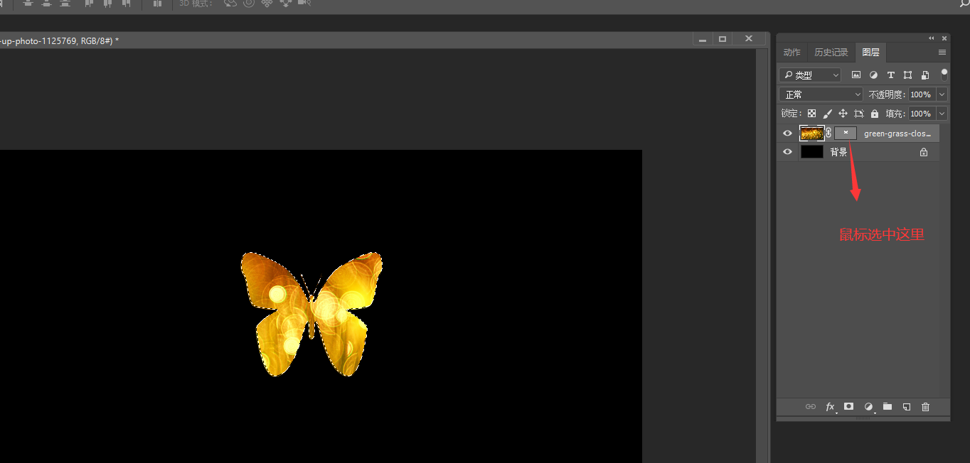 8.按ctrl+J执行复制,复制出一只蝴蝶,再选中这只蝴蝶,按ALT不放,点击鼠标左键不放,拖动到其他位置,多复制几只蝴蝶,如图