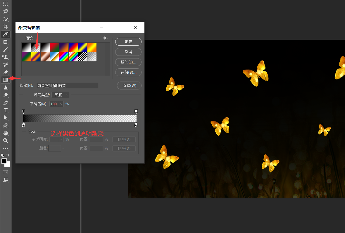 10.最后加上一张自己喜欢的背景,添加图层蒙版,在选择渐变中的黑色到透明的渐变,从上往下拖动,按住shift可保持垂直拖动,如图