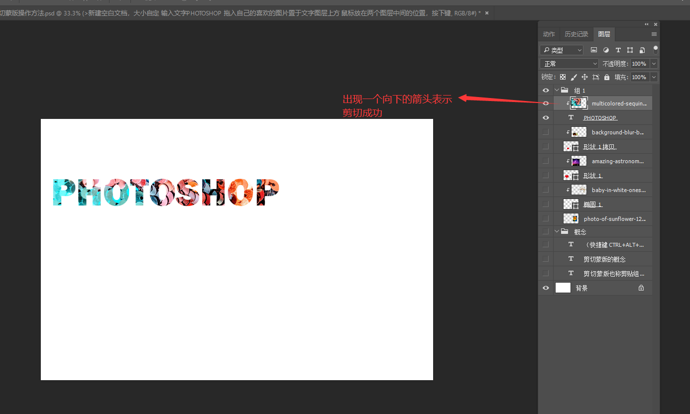 剪切蒙版的概念(快捷键CTRL+ALT+G)