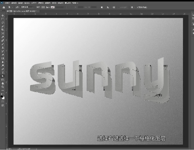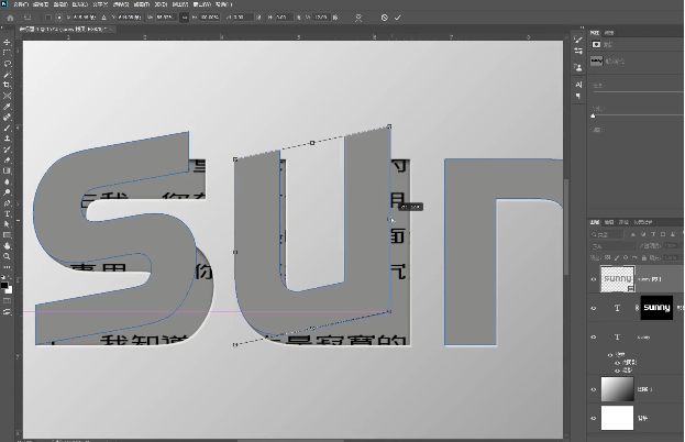 八、复制Sunny图层成为Sunny拷贝放在图层最上方 在此图层中右击/清除图层样式 并将此图层转换为形状 后用直接选择工具依次将每个字母执行Ctrl+T进行扭曲变形 得到翻页效果