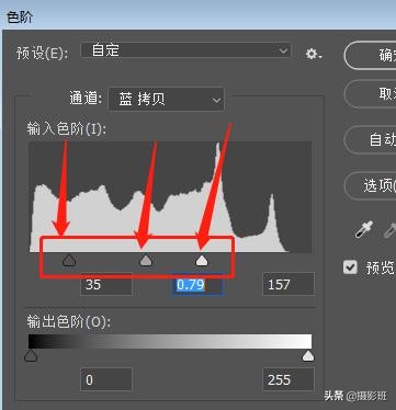 然后再次打开色阶,直到背景全白,头发全黑,如下图。