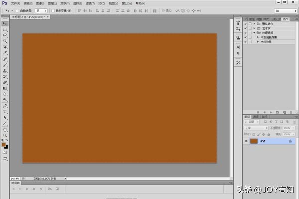 打开Photoshop,快捷键【Ctrl+N】打开新建文档对话框,设置相关的参数后,单击“确定”按钮,之间将前景色设置为R:157、G:88、B:26,按快捷键【Alt+Delete】进行填充。如图所示: