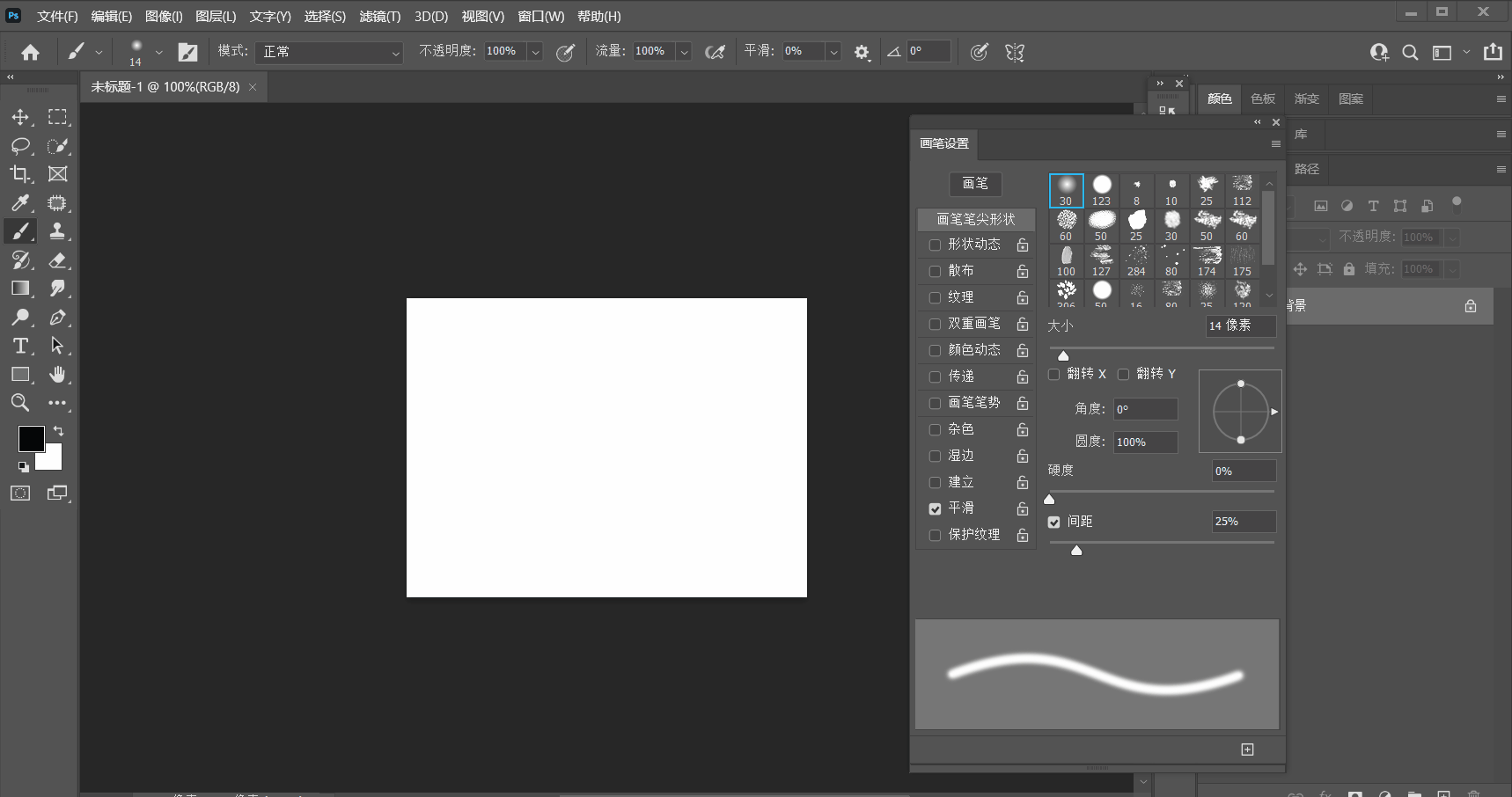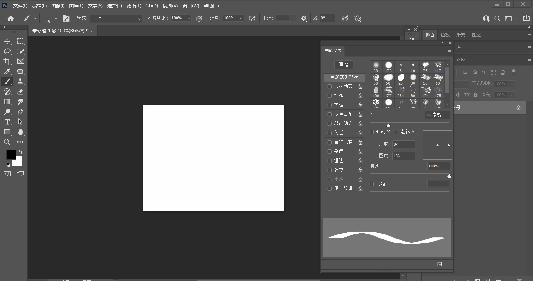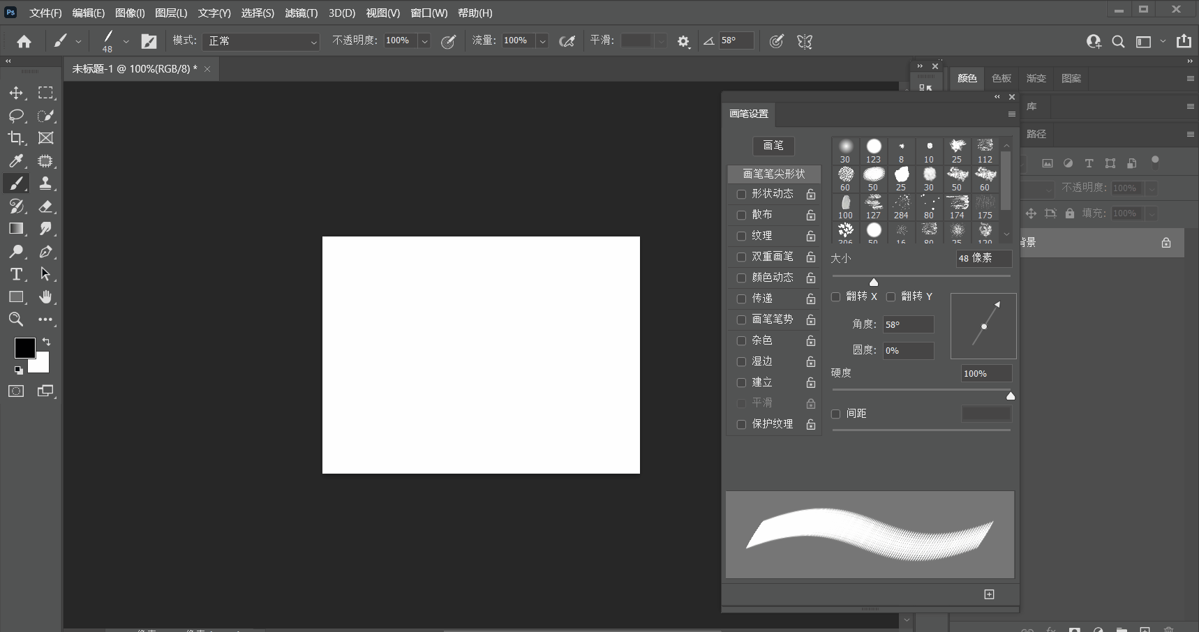 圆度越低,笔刷越扁;圆度越高,笔刷越圆