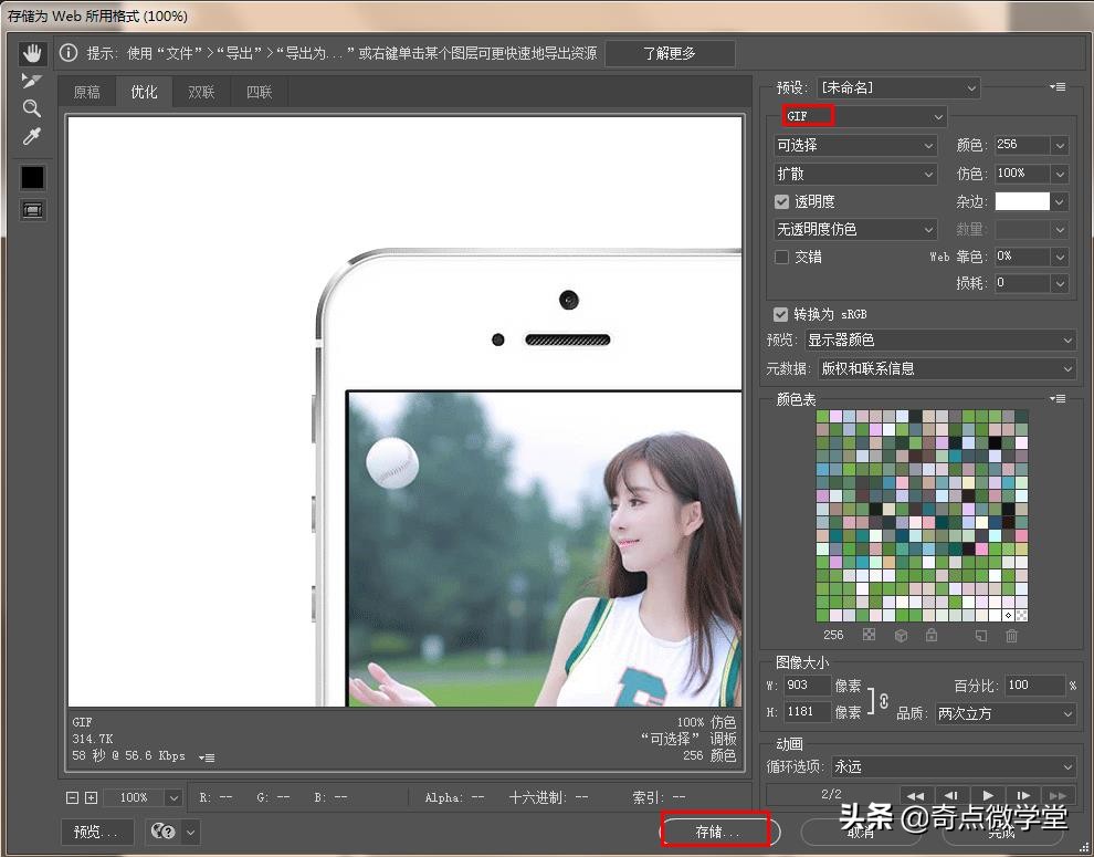 八.格式选择“GIF”格式,点击“储存”按钮。