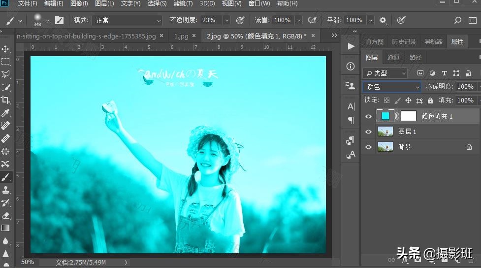 1、这一种方法适用于各种色调,比如你想调成蓝色调,就会把上面第4步的纯色图层设置为蓝色。如果是暖色调,就设置为黄色,最后通过降低不透明度来让色彩更加自然。