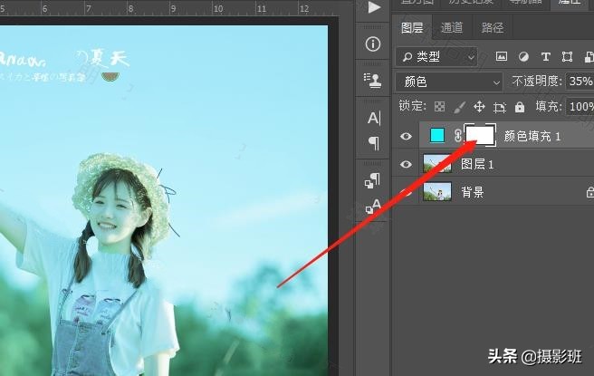 把“不透明度”设置为35,这里也不是固定的,大家根据自己的照片设置即可。