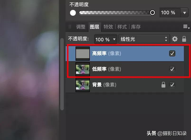 点击应用之后,我们就可以看到affinity photo生产的两个图层,一个是高频率一个低频率。