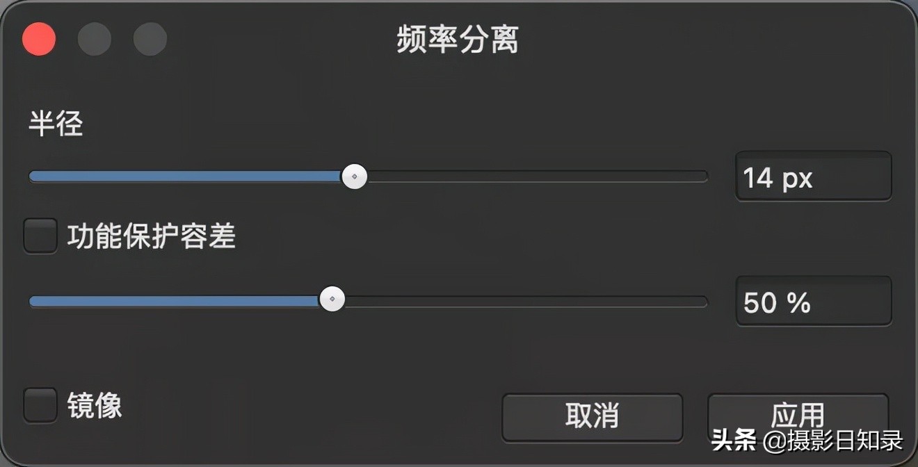 设置合适的频率分离的值和容差。常规而言,半径设置为10-17左右,容差设置为50%左右较为合适,但这个数值并不确定,要根据实际的照片去确定。