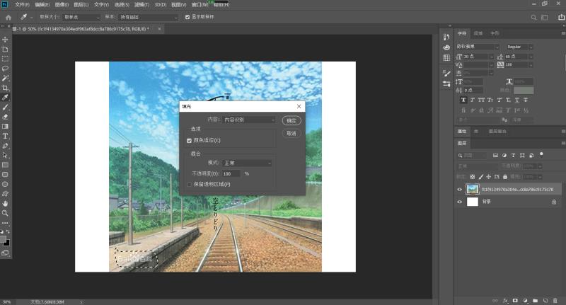 紧接着单机鼠标右键,选着填充。在内容中选择内容识别,并将模式调整为正常模式后,点击确定。