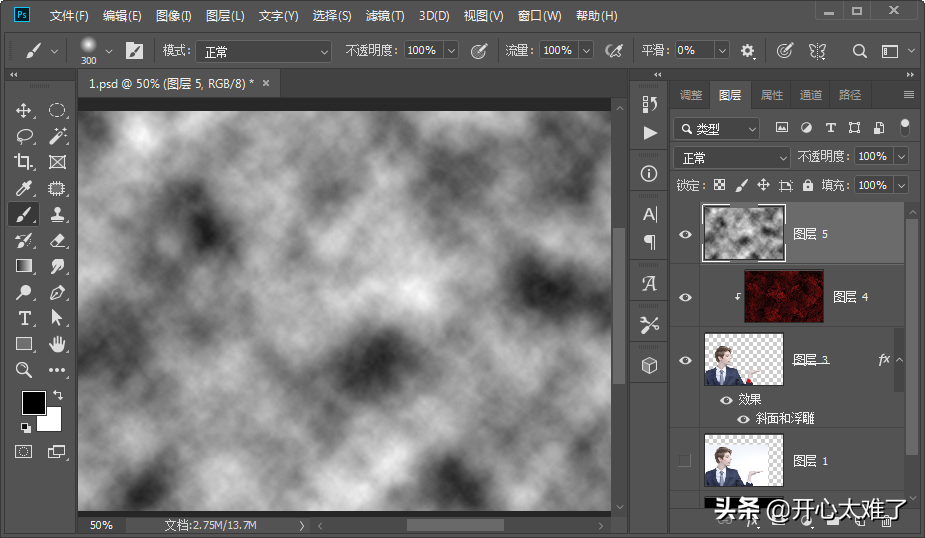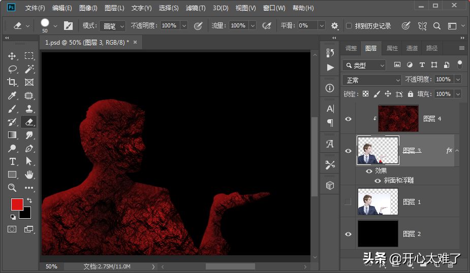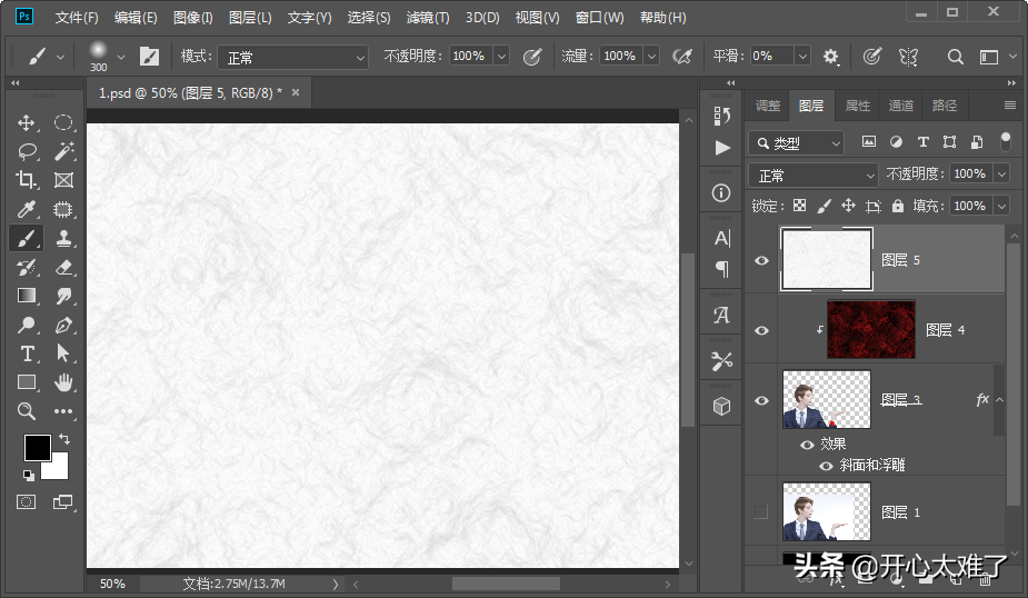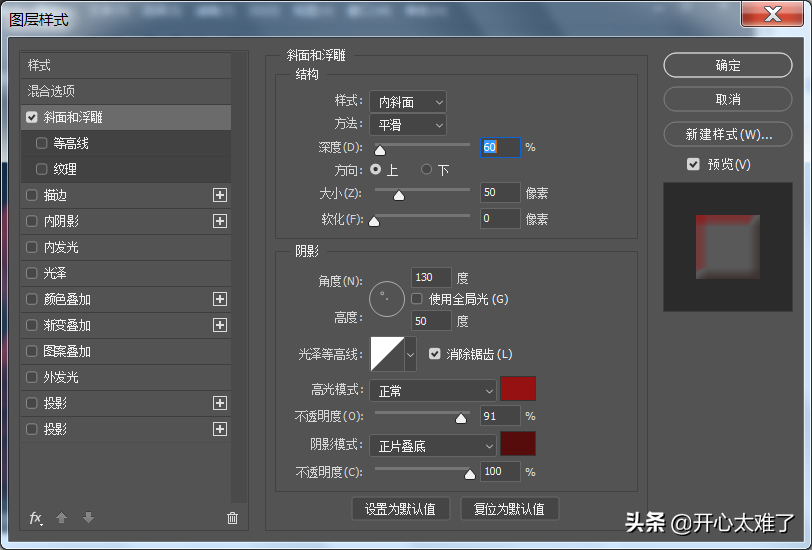 添加图层样式“斜面和浮雕”,塑造立体效果。