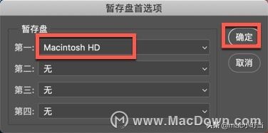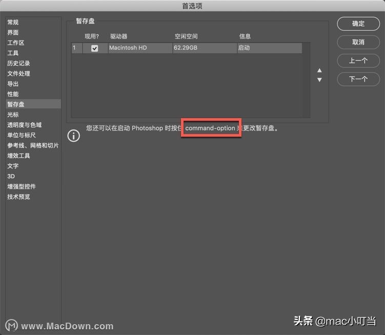 您还可以在启动Photoshop 时按住 command- option 来更改暂存盘。