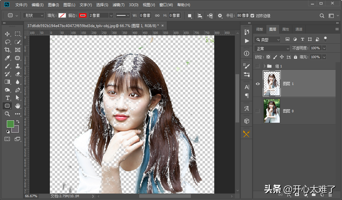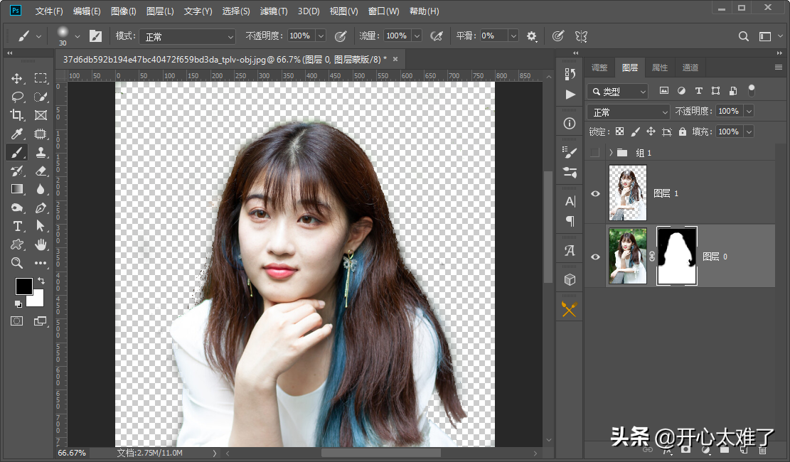 这样人物就完整的从背景中分离出来了,接着就可以更换背景或者进行其他的操作了。
