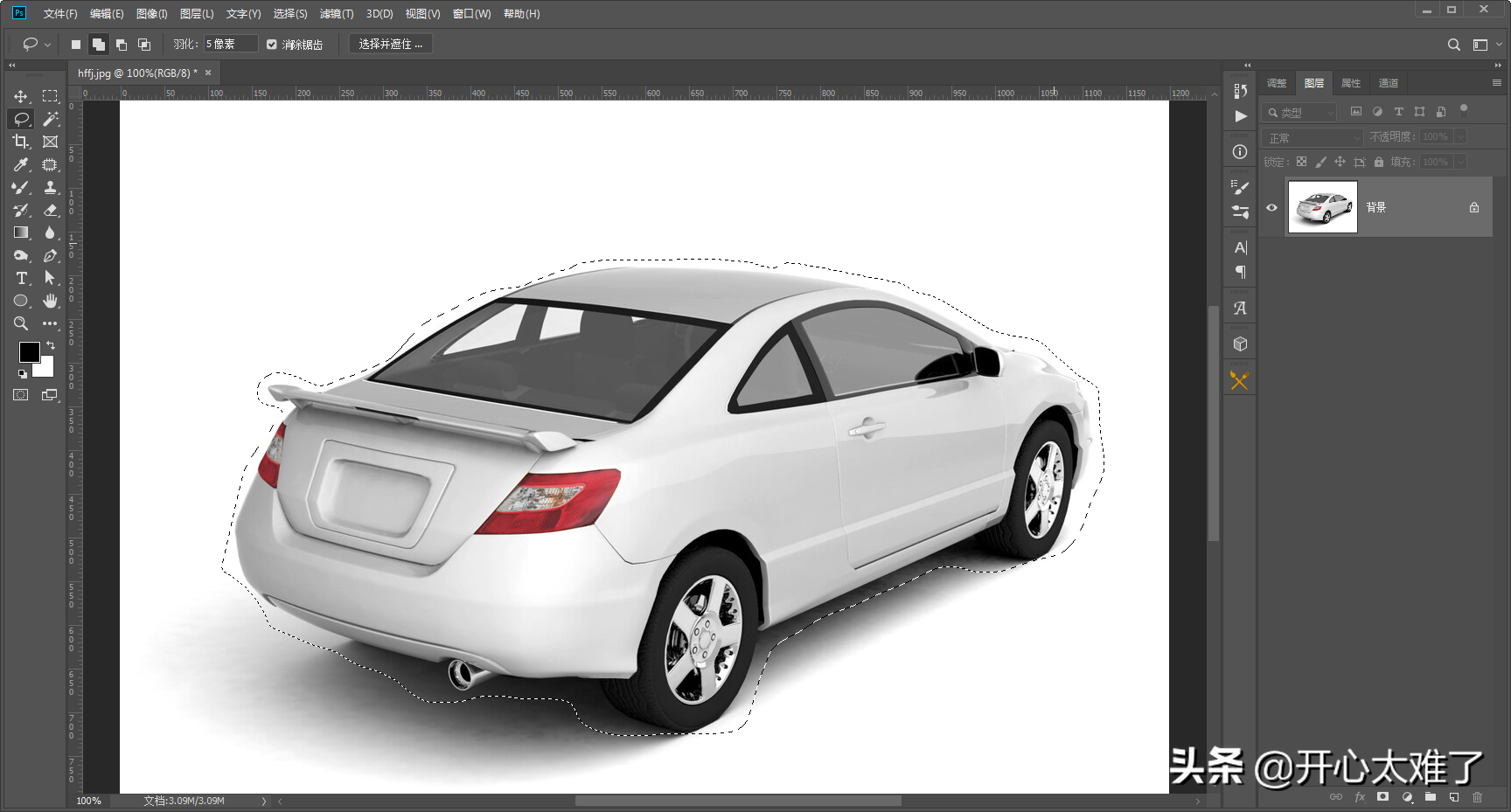 套索工具可以快速地把图像从背景中分离出来。使用方式也很简单,按住鼠标左键沿着图像画一个圈就可以生成一个选区。画的时候尽量贴着图像的边缘,可以配合布尔运算,这样分离出来的图像更准确。