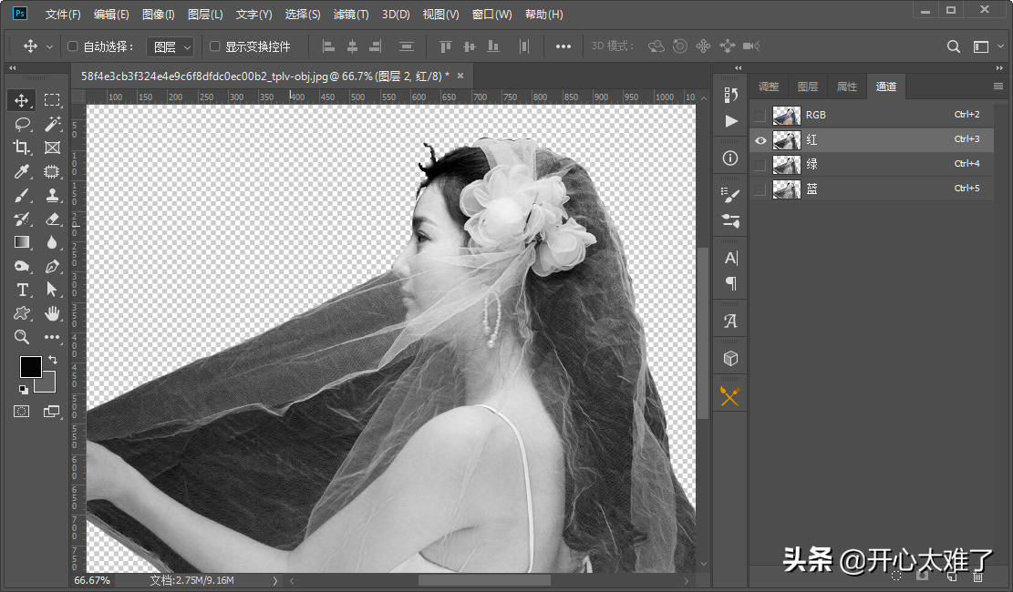 学习了上面的技巧,相信一般的抠图工作都难不倒你们了吧。可是,对于透明的和半透明的物体怎么抠图呢?这就需要用到下面介绍的通道抠图了。