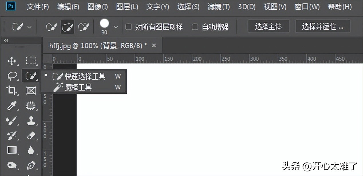 快速选择工具同样可以进行布尔运算,按住“shift”键,添加到选区。按住“Alt”键,从选区中减去。