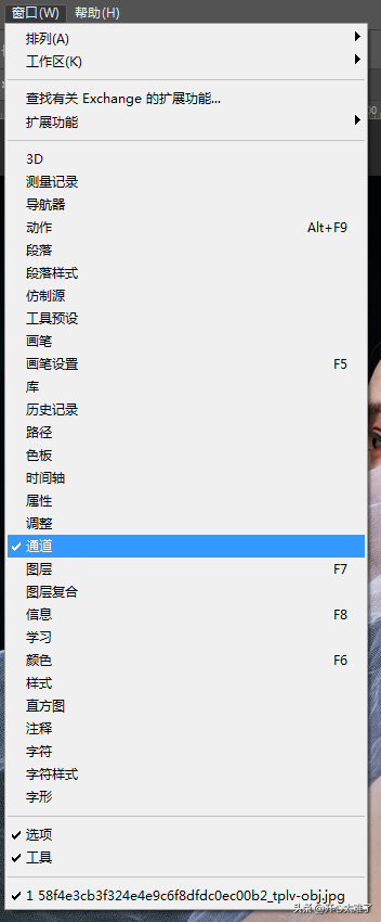 如果你的PS上没有通道面板,点击菜单栏的“窗口”,再点击“通道”,就可以了。