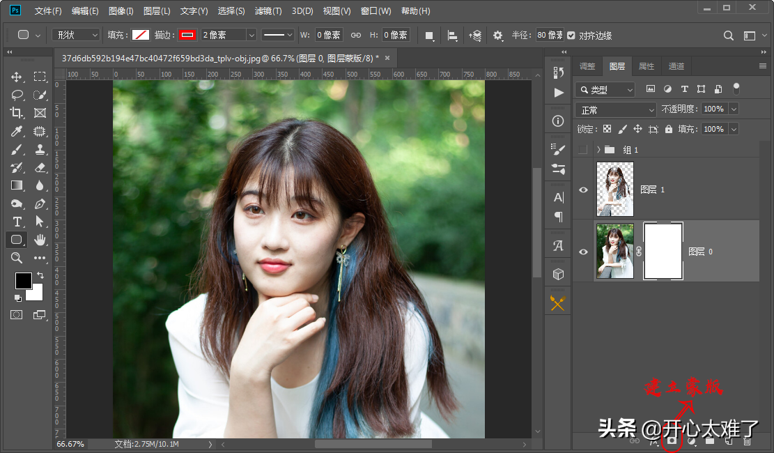 在背景图层添加蒙版。蒙版是PS中很重要的一个功能,有许多很神奇的作用,有句话说“得蒙版者得天下”。以后我会重点介绍,这里就不详细介绍了。需要学习的朋友请关注我。